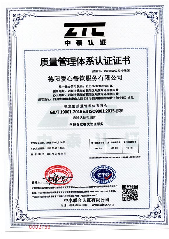 質(zhì)量管理體系認(rèn)證證書